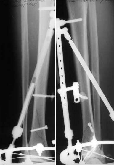 И тоже как посмотреть. Мнение клиники таково, что стержневые системы на голени малостабильны и легко инфицируются (это не мой личный опыт, а мнение
