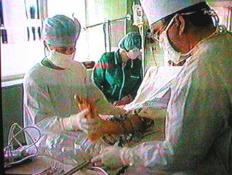И еще хотел бы сказать пару слов о передаче по РТР. Мы увидели, чем отличаются старые, умудренные опытом хирурги: Миланов, Неробеев, Адамян от более молодых. Ни один из профессоров не позволил съемочной бригаде и журналистам снимать в операционной. Даже такую безобидную манипуляцию, как золотое армирование, проф. Адамян А.А. показал на упаковке от нитей, а не на лице человека. Запуская телевизионщиков в операционную, не думайте, что они запечатлевают только ваши подвиги. Их в первую очередь интересуют "жареные" факты и шокирующие кадры. Кто смотрел, вспомнит наезд камеры на инструменты ортопеда: гаечный ключ, кусачки из черного металла или как хирург с плеча рубит кость, или как пальцы вводятся в разрез в инфрамаммарной складке. Все мы так работаем. Но не все надо показывать населению. Это только отпугивает людей и создает нам имидж садиста. Нельзя операционную, это святое место, где решается судьба человека, превращать в проходной двор. Или надо после съемок присутствовать на монтаже. Хотел бы я посмотреть, как вас туда пустят.