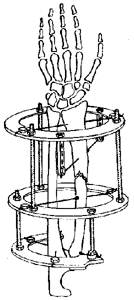 There is a well established Ilizarov technique for forearm fractures and particularly the Monteggia conponent - after closed reduction the proximal radius is fixed by an olive wire, it is a single wire through the both bones.