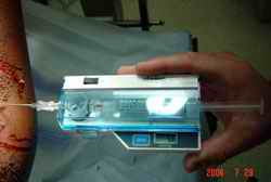 Раньше пользовались стационарными, а в последние время всеобщий переход к портативным Stryker с меняющимися одноразовыми иглами.