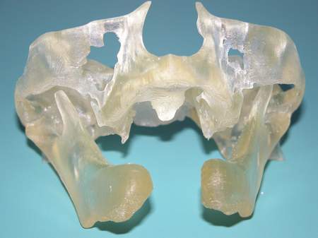 Прилагаются фотографии locus morbi на данный момент, кадры СКТ с 3Д реконструкцией, фото изготовленной стериолитографической модели.