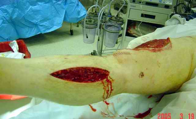 03.19.2005 дебрайдмент - закрытие медиальной раны