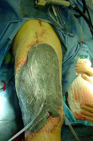 03.24.2005 закрытие латеральной раны и кожная пластика на бедре вызванным специалистом (plastic surgeon)