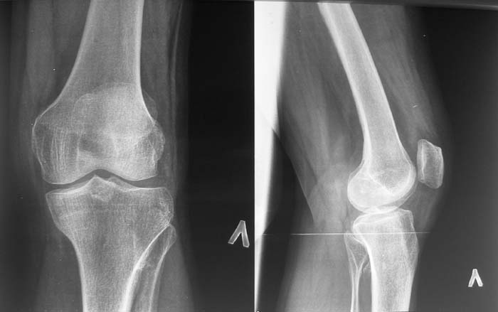 Суставная щель на вид очень даже приличная. Мне кажется у больной есть варусная деформация колена, и возмможно с этим связано дегенаративное поражение медиального мениска и вся клиническая картина. Если это так, то эндопртезирование это слишком! Может что полегче: артроскопия и медиальная плюс-остеотомия.