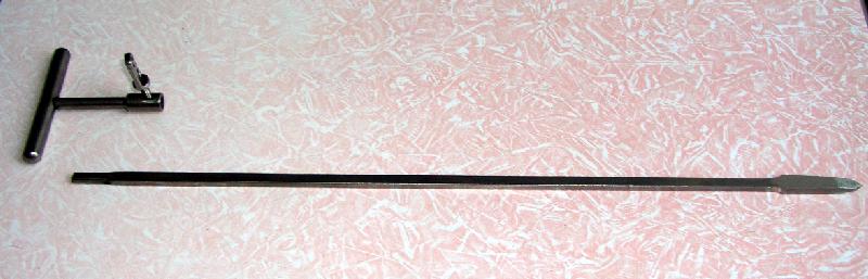 Мы сделали своего рода гибрид шила и развертки, набор диаметром 5-15 мм. То есть можно и вращать, расширяя канал, и молотком стукнуть, где запаян. И подогнуть предварительно, чтобы в заданном направлени продвигаться, исли надо не по прямой. Сделали первые из титановых (вроде ВТ-5) заготовок для остеосинтеза по Звереву-Ключевскому. Даже получили патент на полезную модель. Одно время Деост намеревался их делать, сейчас еще предприятие ЦИТО пробует. Пример в приложении.