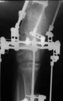 Уважаемые коллеги! Девочка, 15 лет. Диагноз: Дисхондроплазия. Варусная деформация дистального метафиза правой бедренной кости; состояние после оперативных вмешательств (1993 и1994 гг.). Деформация правой нижней конечности с 6 месяцев (стала прогрессировать после года, с момента начала ходьбы). Поставлен диагноз болезнь Олье, варусная деформация, укорочение правой нижней конечности на 4,5 см. 1993 г. - операция остеоклазия на уровне очагов поражения в н/3 правой бедренной кости и в/3 правой большеберцовой кости с одномоментной коррекцией деформации и фиксацией костных фрагментов спицами Киршнера.После начала статической нагрузки (1994 г.) появился рецидив деформации и укорочения. Вторая операция - ЧКО АВФ, аппарат демонтирован через 2недели в связи с развившимся на уровне стержня переломом, после чего находилась в гипсовой повязке до консолидации костных фрагментов. Далеелечилась консервативно в гипсовой повязке. Выраженная деформация и укорочение правой нижней конечности. Относительная длина бедер: справа -34 см, слева - 51 см; анатомическая длина голеней: справа - 29 см, слева - 39 см. Величина варусной деформации на уровне дистального отдела правого бедра составляет - 80 град. Амплитуда движений в коленных суставах (разгибание/сгибание ): справа - 0/0/100 град.; слева - 0/0/30 град. Отмечается боковая и ротационная нестабильность на уровне правого коленного сустава. Амплитуда движений в голеностопных суставах - в норме. Тактика лечения? Заранее благодарю! С уважением,А.В.Владзимирский