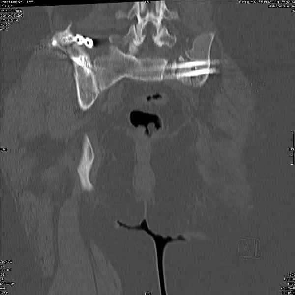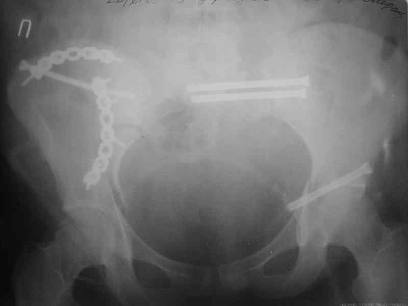 Ув.коллега.Думаю, что реостеосинтез винтами бесперспективен.Пороз, наличие большого массива рубцовой ткани, невозможность создать жёсткую фиксацию в зоне ложного сустава крестца требуют изменеия вида остеосинтеза. Тут возможны два варианта.1) Открытый остеосинтез с атупластикой и фиксацией ВЧКО задним стержневым крестцовым аппаратом.2)Тоже самое, но фиксация 2 резьбовыми штифтами типа Штейнемана за заднюю ость подвздошной кости. От выдавливания крестца кпереди следует на этих гвоздяж зафиксировать реконструкционную пластину, которая винтами синтезирует фрагменты крестца.
