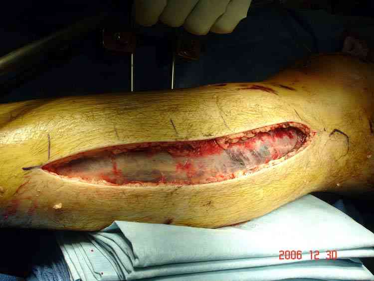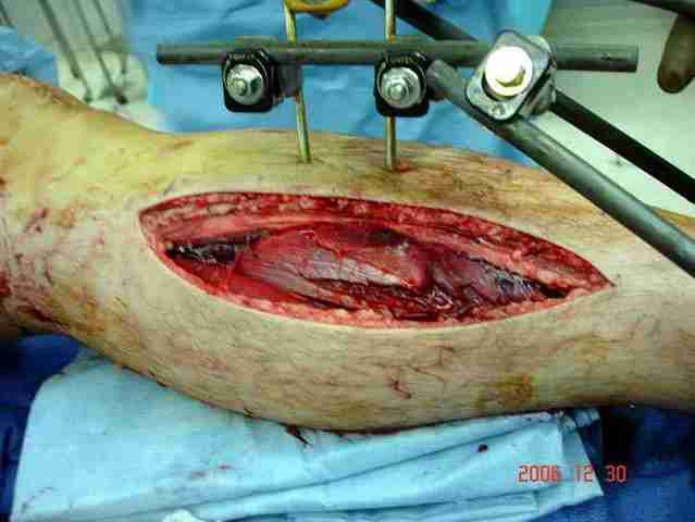 2)Возможно стоит рассекать фасцию при подобных высокоскоростных травмах первично "по протоколу" всегда ?