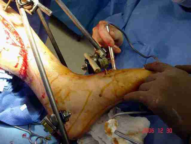 У специалистов АО особый культ обращения с мягкими тканями опереруемого участка. Владея техникой и знаниями всех трюков по перемещению фрагментов, они добивались отличных результатов без некроза кожного покрова. В то же время, эти результаты не смогли повторить хирурги из Нового Света, они получали множественные осложнения по несращению, и некоторые заканчивались ампутациями голени.