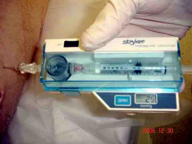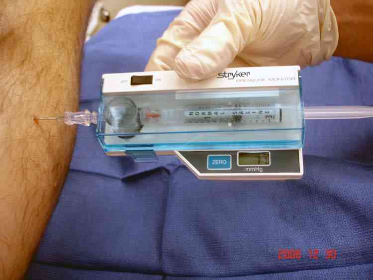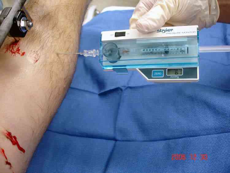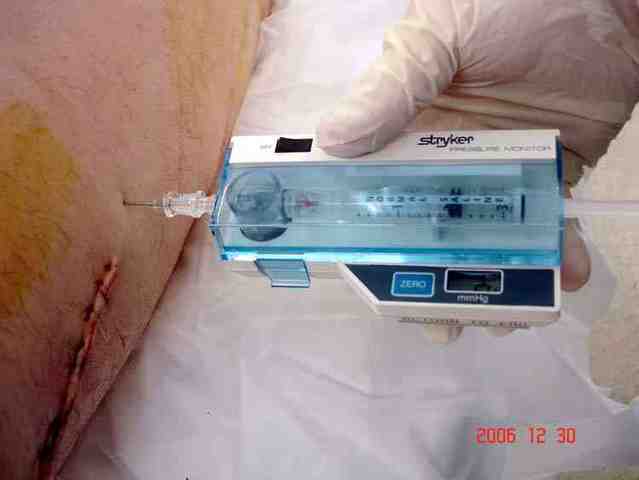 Сравнительный повторный мониторинг на компартмент синдром, на голени утром давление поднялось до 70 мм, когда послеоперационные были около 30мм.