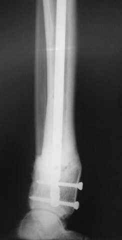 5, 6 - через 2,5 мес после травмы выполнен закрытый остеосинтез блокируемым штифтом.