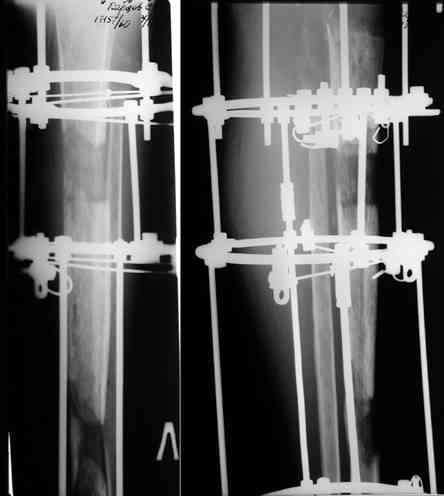 Прикрепляю пример замещения дефекта бедра 20 см, после резекции по поводу опухоли, эндопротеза Сиваша, вялотекущего остеомиелита со свищами в течении 3 лет. Получилось хорошо и всего за 6 месяцев в аппарате. Колена не было. У Вас случай сложнее. Это было в 1998г. Я работал в ЦИТО и у меня было 4 больных, я занимался им с утра до ночи. Сейчас 60 больных и операций в нашем отделении 25-30 в неделю.Если могу чем помочь - нет проблем.