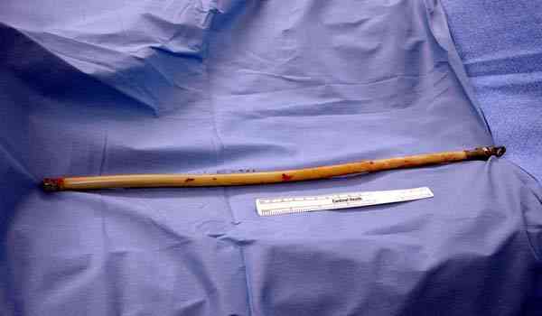 После определения длины канала берется 3мм длинная проволока, обычно "long guided wire" от интрамедуллярного набора, концы загибаются, ее