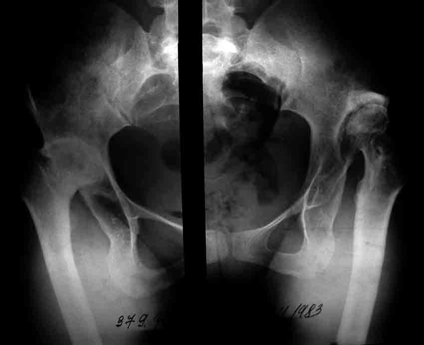 Посмотрите на вертлужную впадину при ревматоидном артрите - вертлужная впадина не на месте, нет кости да и качество кости при ревматоидном артрите