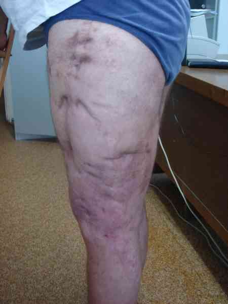 1, 2 - вид бедра на операции (имеется гнойное отделяемое из свища в верхней трети бедра);