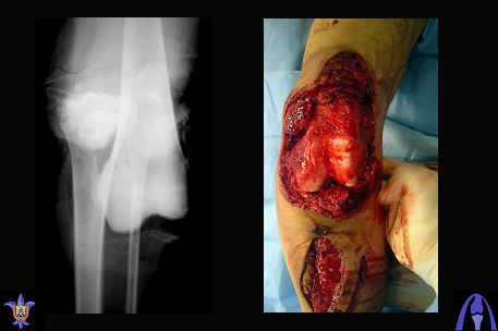 На ренгенограмме хорошая аппозиция костей коленного сустава, но надколенник находится подозрительно высоко, поэтому необходимо убедиться в отсутствии повреждения связки надколенника.