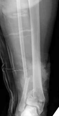 структуральными элементами невозможно предохраниться от посттравматической деформации. Латеральная колонна удерживается малоберцовой поэтому голень деформируется в варус.