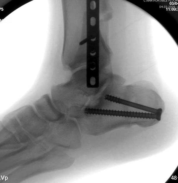 Если больному показан артродез, то какой метод выбрали бы для артродезирования голеностопного сустава?
