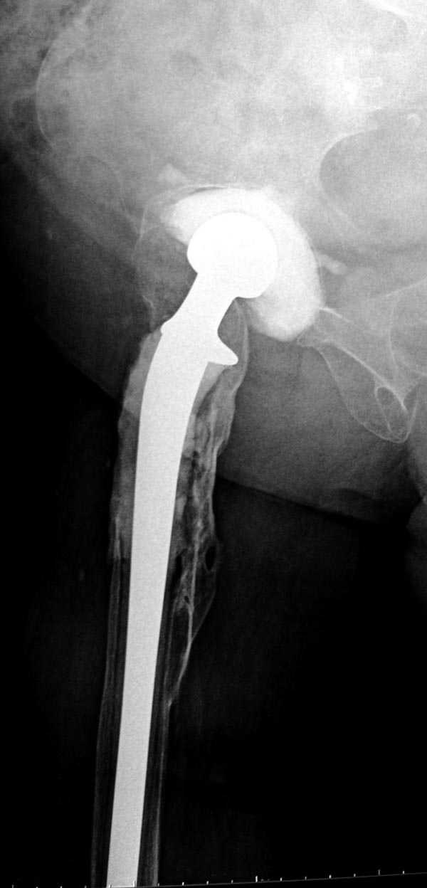 Как-то показывал случай после осложненного тотального эндопротеза, сперва из-за отсутствия экономических возможности, а затем привыкшая к своей участи вот уже более 8 лет ходит на временном "протезе-спейсере".
