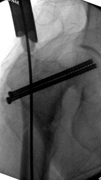 Правильно, ситуация изменилась, как говорят у нас теперь "different animal", надо решать проблему подвертельного перелома. При наличии различных вариантов фиксаторов, включая Страйкер Гамма 3, мы выбрали DePuy Antegrade Trachanteric Nail из-за многовариантности проксимальной фиксации и двойного изгиба. Вводится через вертел под 8 градусным углом, и есть достаточный передний диафизарный изгиб, предупреждающий пенетрацию дистального переднего кортекса.
