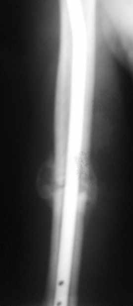 Обычное дело, пусть разрабатывает давно, лучше с методистом. Тут по снимкам проблем не видно. Винты вводить необязательно - если хирург знает, что делает. Например, если получился хороший press-fit из-за несоответствия формы гвоздя и канала.