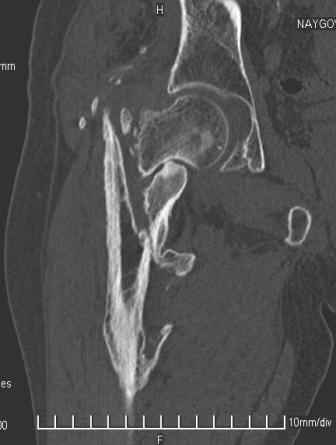 из Коллеги! Больной Н. 44 года травма 1,5 года назад июнь 2008 года чрез-под вертельный перелом правого бедра. Во время лечения у больного развился алк. делирий, проводилось консервативное лечение перелома.