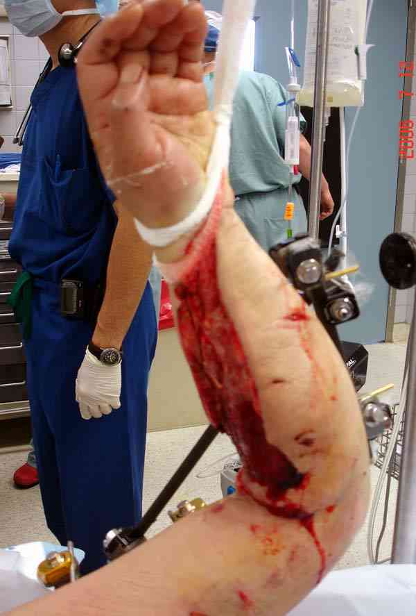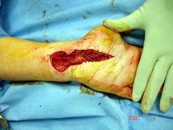 2.Как выглядит КС на верхней конечности?(тоже фасциотомия?)