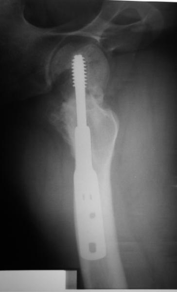 Пациент 20 лет по поводу перелома шейки бедра оперирован в соседнем регионе 9 мес. назад.