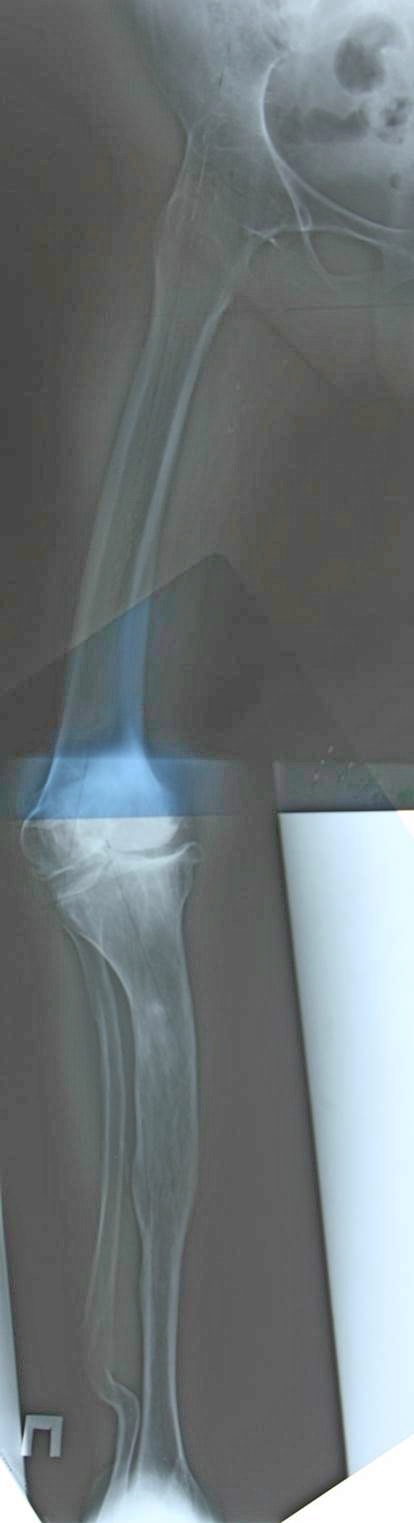 Очень хотелось бы посмотреть снимки обеих нижних конечностей на всем протяжении при этом стоя, чтобы оценить положение компонентов не лежа, а стоя с нагрузкой.